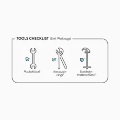 Schön angenehm ist der weiche Wasserstrahl, fĂŒr den die enthaltene MischdĂŒse sorgt. Nach dem Einbau kannst du auĂerdem gleich loslegen: Wir haben nĂ€mlich bereits eine hochwertige Kartusche mit keramischen Dichtscheiben fĂŒr dich verbaut. Und weil du ein Bad willst, das lange hĂ€lt, besteht sie aus solidem Messing. Durch die verchromte OberflĂ€che erhĂ€lt sie ihr schickes Aussehen. Damit du bei der Montage nicht unnötig Zeit verschwenden musst, legen wir der Armatur alles an Material bei, das du zum Einbau brauchst.