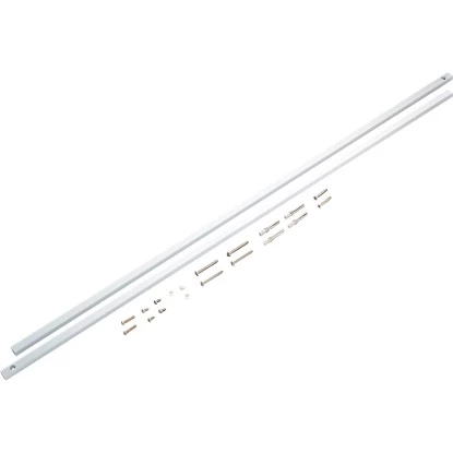 Das weiße Befestigungs Set dient zur Montage des Profils der Drehtüren der Serie New Port 90 an der Wand und besteht aus den benötigten Schrauben und Dübeln.
