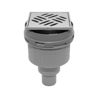 Abläufe mit Kunststoffaufsatzrahmen 130x130x8,5 mm, Rahmen 360 ° drehbar und inkl. Standardrost 120×120 mm aus Edelstahlt, Belastungsklasse K3