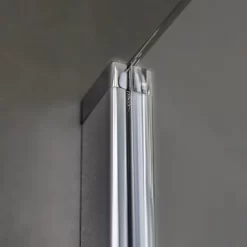 In Badezimmern mit ebenerdigen Duschen kann der Eckeinstieg ebenfalls installiert werden und erlaubt so ein barrierefreies Duscherlebnis. Der Ein- sowie Ausstieg fällt so besonders komfortabel aus und eventuelle Stolperfallen gehören der Vergangenheit an. Die Dusche ist 90 cm breit und 200 cm hoch. Der Verstellbereich von 2 cm je Seite erlaubt bei der Montage genügend Spielraum. Die Runddusche besitzt einen Radius von 55 cm.