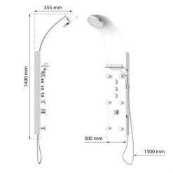 Eisl Duschpaneel Karibik 3 In 1 mit Regendusche Sechs Massagedüsen Weiß. Exklusives Duschsystem aus weißem Sicherheitsglas – Eyecatcher in jedem Bad