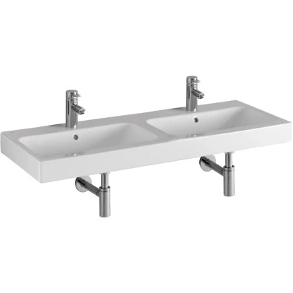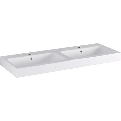 Die Design-Serie iCon von Geberit überzeugt mit geradlinigen und klaren Linien. Die breiten Ränder komplementieren das moderne Design des Waschbeckens. Aber nicht nur optisch, sondern auch funktional hat iCon viel zu bieten. Das weiße Doppelwaschbecken ist aus Feinfeuerton gefertigt und dadurch besonders robust, kratzfest und strapazierfähig.