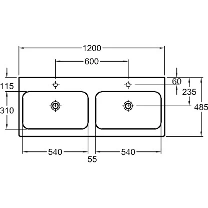 Es ist mit zwei Hahnlöchern, zwei runden Überläufen und mit zwei getrennten Becken ausgestattet. Dadurch bietet das Waschbecken besonderen Komfort und genügend Platz für die ganze Familie. In schlichtem Weiß lässt es sich mit Ihren Dekorationen, Handtüchern und Möbeln kombinieren, ohne dabei Langweilig zu wirken.