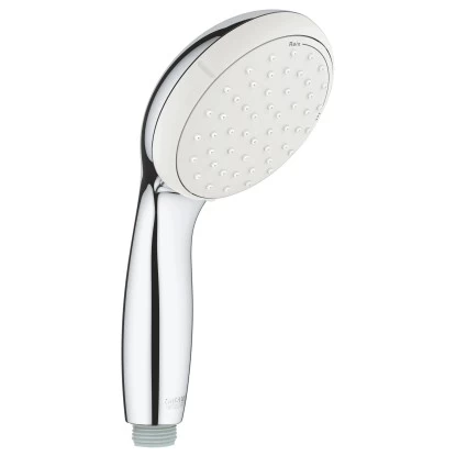 Die Grohe Handbrause Tempesta 100 verfĂŒgt ĂŒber die Strahlarten Rain fĂŒr ein DuschgefĂŒhl wie bei einem warmen Sommerregen und Jet als konzentriertem Strahl, der zum Beispiel bestens zur Hautstimulation geeignet ist. UnterstĂŒtzung gibt es durch Grohe Dreamspray, das fĂŒr ein perfektes Strahlbild sorgt. Grohe EcoJoy spart Wasser, liefert aber auch einen konstanten Durchfluss von 9,5 l/min. Die glĂ€nzende Grohe StarLight OberflĂ€che ist kratzfest und schmutzresistent und schafft in Verbindung mit dem SpeedClean Antikalk-System hygienische VerhĂ€ltnisse auch bei hĂ€ufigem Duschen. Abgerundet wird diese Handbrause durch den Einsatz eines ShockProof Silikonrings, der vor BeschĂ€digung durch Herunterfallen der Brause schĂŒtzt. Ein zuverlĂ€ssiger Begleiter bei der tĂ€glichen Dusche.