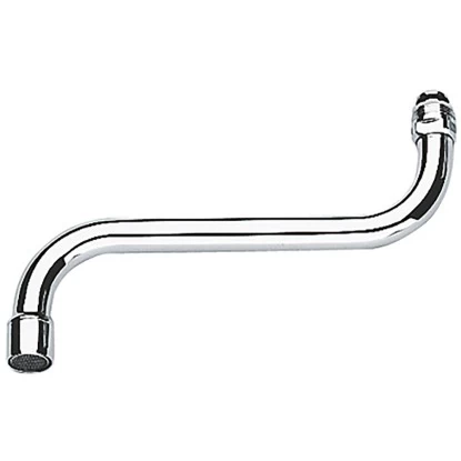 Der Grohe Rohrauslauf fĂŒr die KĂŒchen-Wandbatterie ist schwenkbar und verfĂŒgt ĂŒber einen Mousseur. Die Ausladung des Rohrauslaufes betrĂ€gt 200 mm. Das Material besteht aus DR-Messing.