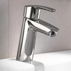 Die Grohe Start Einhand-Waschtischbatterie mit Temperaturbegrenzer in mittelhoher AusfĂŒhrung ist in der Farbe Chrom gefertigt. Die Waschtischbatterie ist mit einer Grohe SilkMove 28 mm Keramikkartusche, Grohe StarLight OberflĂ€che, Grohe QuickFix Schnellbefestigungssystem und Grohe EcoJoy 5,7 l/min SpeedClean Mousseur ausgestattet.