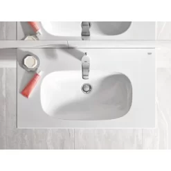 Eine moderne Lebensweise muss nicht an der Tür zum Badezimmer enden. Das Waschbecken bringt einen unverwechselbaren und zeitlosen Look in Ihr Bad. Die glänzende Oberfläche wirkt insbesondere mit Armaturen der Grohe Kollektionen Eurostyle und Eurosmart äußerst harmonisch.