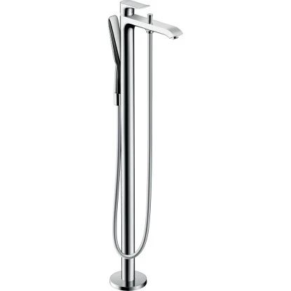 Der Hansgrohe bodenstehende Wannenmischer Metris besticht durch hochwertiges Design in Chrom.