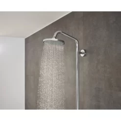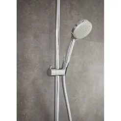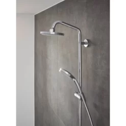 Hansgrohe Regendusche für Rundum-Duschkomfort. Das Croma 160 Duschsystem mit 1 Strahlart und Thermostatverwöhnt mit einer 160 mm großen Kopfbrause, die sich im Winkel verstellen und individuell ausrichten lässt. Die Strahlart Rain erfrischt am Morgen und spendet neue Energie nach einem langen Arbeitstag. Die Croma 100 Vario Handbrause ergänzt flexibel mit den beiden Strahlarten Rain und IntenseRain. Sie eignen sich ideal zum Ausspülen von Shampoo und für eine belebende Erfrischung.