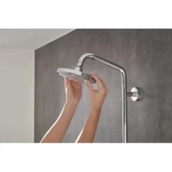 Der vollverchromte Brauseschieber kann stufenlos auf Wunschhöhe und im Neigungswinkel verstellt werden.