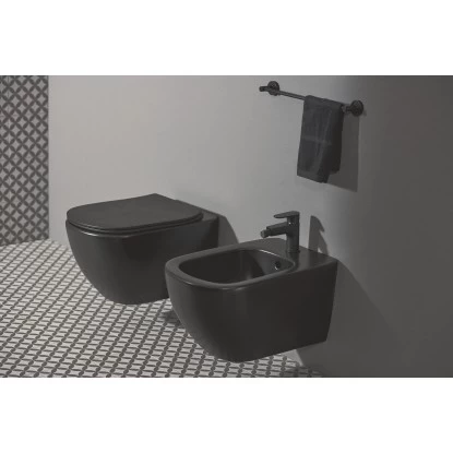 Schwarz bringt Stil und Eleganz in Ihr Bad. Mit unserer Silk Black OberflÀche setzen Sie ein Statement in Ihrem Badezimmer.