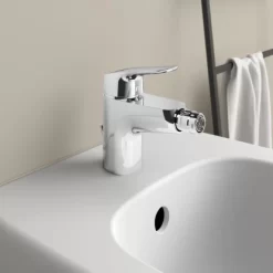 Die Ideal Standard Bidetarmatur Ceraflex verfĂŒgt ĂŒber eine herausragende Armaturentechnologie mit einer FirmaFlow-Keramikkartusche. Sie ist extrem langlebig, funktionssicher und spart Wasser und Energie. Die Bidetarmatur von Ideal Standard besitzt einen starren Gussauslauf mit Luftsprudler und Kugelgelenk. Der Bedienungshebel besteht aus Metall verfĂŒgt ĂŒber eine permanente Rot- und Blau-Markierung fĂŒr die Temperatureinstellung. Es ist eine FirmaFlow 38 mm Kartusche mit keramischen Dichtscheiben enthalten.