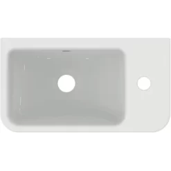 Das Ideal Standard Handwaschbecken aus der Serie Ideal Standard i.life S ist eine platzsparende Lösung, die Ihr Zuhause bereichert. Die Kollektion entstand in Zusammenarbeit mit dem preisgekrönten Studio Palomba Serafini Associati. Die rechteckige Form mit klaren Linien und weich abgerundeten Kanten setzt sich dabei gekonnt in Szene. Optisch überzeugt das Design in klassischem Alpin Weiß und einer glanzvollen Oberflächenoptik. Das Handwaschbecken wurde aus hochwertigem und robustem Feinfeuerton gefertigt, damit Sie lange Freude an Ihrer neuen Keramik haben.