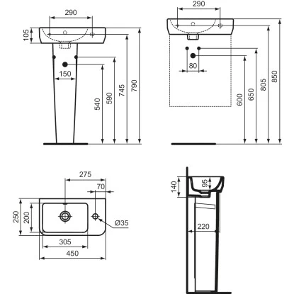 Ein integrierter Überlauf gewährleistet Ihnen einen sicheren Schutz im Alltag vor einem überlaufenden Becken. Durch ein vorgefertigtes Hahnloch auf der rechten Seite erhalten Sie die Möglichkeit, schnell und individuell Ihren Waschplatz mit einer passenden Armatur wie der von Ideal Standard zu gestalten.