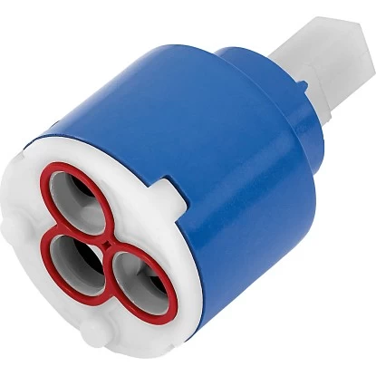 Die Keramikkartusche eignet sich zur Regelung von Durchflussmenge und Temperatur. Sie wird als Ersatzteil für Einhebelarmaturen verwendet und ist einsetzbar für die Brausearmatur Dordo. Als Außenmaterial dient Kunststoff, während die Dichtscheiben aus Keramik bestehen.