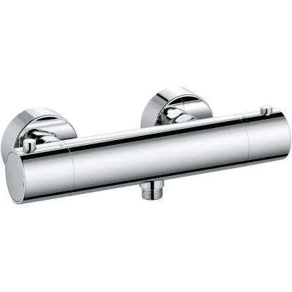 Die Brausearmatur ist in einer edlen Chrom-Optik gehalten und ist eigensicher gegen RĂŒckflieĂen. Das Thermostat ist mit einem Schmutzfangsieb ausgestattet und hat ein Brauseabgang-MaĂ von 1/2″.