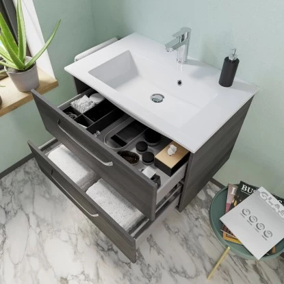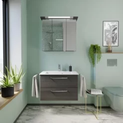 Als wandelbarer Allrounder und im kubischen Stil gestaltet, ist diese Badmöbelserie ein wahrer Bestseller. Die klare Formensprache bestimmt das zeitgemäße Design des Kundenlieblings. Das pflegeleichte Mineralmarmorwaschbecken mit seiner geradlinigen Form passt perfekt zum Waschbeckenunterschrank. Trentino passt sich jedem Ambiente mühelos an.