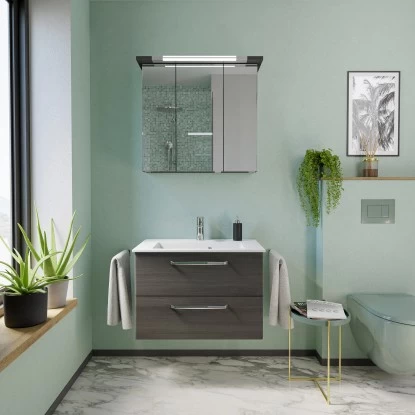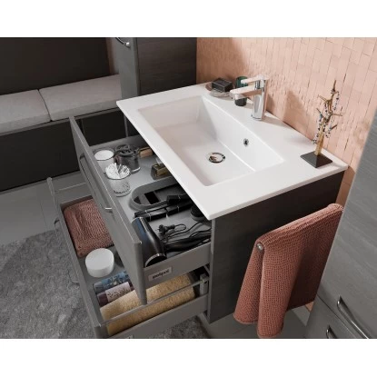 Bitte beachten Sie: Artikel dieser Serie sind nur bestellbar in Kombination aus mindestens Waschbecken, Waschbeckenunterschrank und Spiegelschrank.