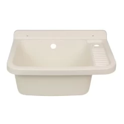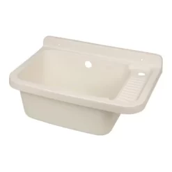 Das Ausgussbecken findet seinen Einsatz vorrangig in Neben-, KellerrÀumen oder Garagen. Der Ausguss befindet sich mittig, wandseitig ist der Rand erhöht. Dadurch gelingt die Wandontage besonders leicht. ZusÀtzlich ist das Becken mit einer AblageflÀche sowie einem integrierten Seifenspender auf der rechten Seite ausgestattet. Der SeifenstÀnder kann individuell durch einen kleinen Wasserhahn ersetzt werden (separat erhÀltliches Material).