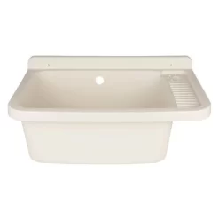 Das Ausgussbecken findet seinen Einsatz vorrangig in Neben-, KellerrÀumen oder Garagen. Der Ausguss befindet sich mittig, wandseitig ist der Rand erhöht. Dadurch gelingt die Wandontage besonders leicht. ZusÀtzlich ist das Becken mit einer AblageflÀche sowie einem integrierten Seifenspender auf der rechten Seite ausgestattet. Der SeifenstÀnder kann individuell durch einen kleinen Wasserhahn ersetzt werden (separat erhÀltliches Material).