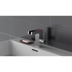 Orinoco Led Waschtischarmatur mit Schwallauslauf Chrom. Mehr Sicherheit fĂŒr die ganze Familie? Kein Problem. Bei dieser Waschtischarmatur wird die Wassertemperatur durch LED-Dioden farblich markiert und minimiert so das Risiko fĂŒr VerbrĂŒhungen.