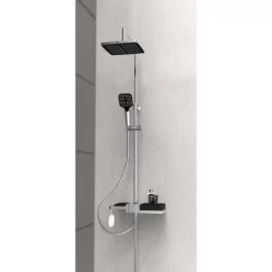 Schütte Überkopfbrause-Set Blueperl Chrome-Schwarz Mit Ablage