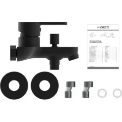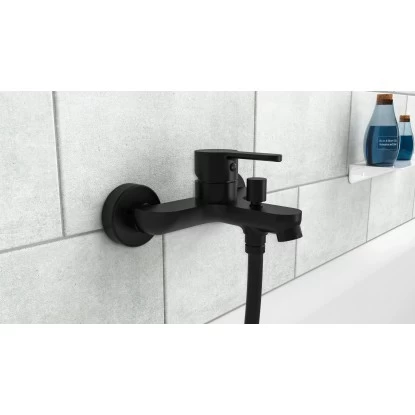 Denver WannenfĂŒllarmatur Schwarz Matt Badarmaturen. Der genormte 1/4 Brauseabgang ermöglicht den Anschluss vieler handelsĂŒblicher DuschschlĂ€uche.