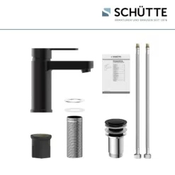 Die Waschtischarmatur Elephant Schwarz-Matt verbindet ausgetüfteltes Design und die einzigartige Funktionalität . Die hochwertige Verchromung und die keramischen Dichtungsscheiben sorgen für eine lange Lebensdauer und für präzise Regelung der Durchflussmenge und der Wassertemperatur. arbeitet äußerst geräuscharm. Die komfortable Einhand-Bedienung ermöglicht mehr Bewegungsfreiheit im Waschbeckenbereich. Die Hochdruck-Armatur Elephant verfügt über einen Kalt- und einen Warmwasseranschluss. Zum Lieferumfang gehören zwei Flexschläuche und 11/4 Zoll (Ø ca. 4 cm) Stangen-Exzentergarnitur (Ablaufgarnitur). Mit Hilfe eines kleinen Hebels am Armaturenkörper wird der Auslauf geöffnet oder geschlossen. Das Schnellbefestigungsset und eine deutsche Montageanleitung machen die Installation für Sie zum Kinderspiel. Die Waschtischarmatur Elephant entspricht den Bestimmungen der deutschen Trinkwasserverordnung. Komponenten mit Wasserkontakt sind KTW und W270 geprüft. Strenge Qualitätskontrollen und hochwertige Materialien gewährleisten hohe Sicherheit und beste Wasserqualität.