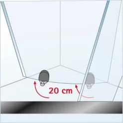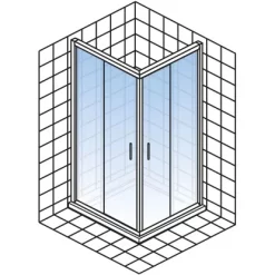 Die beiden SchiebetĂŒren erzeugen einen groĂzĂŒgigen Eckeinstieg in den Duschbereich, verhalten sich aber ebenso platzsparend. Die zur Seite öffnenden DuschtĂŒren ragen zu keinem Zeitpunkt in den Raum hinein.