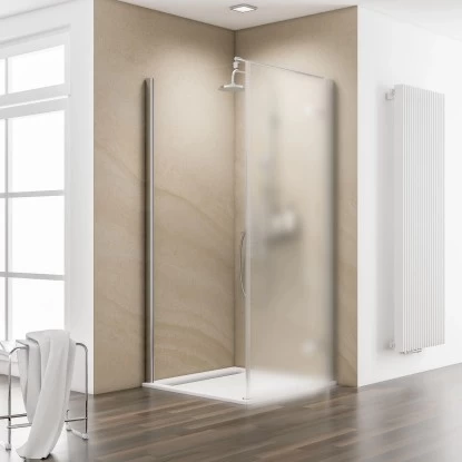Die Seitenwand besteht aus 6 mm Einscheiben-Sicherheitsglas. Sie passt zur Drehtür.