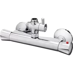 Dieses 5-teilige Überkopfbrause-Set fügt sich mit seinem zeitlosen Design in Chromoptik in jedes Bad ein. Es enthält eine Handbrause, Überkopfbrause, Duscharmatur mit Thermostat sowie einen Brauseschlauch und ein Steigrohr. Während der Brauseschlauch aus poliertem Edelstahl besteht, sind Handbrause und Stange aus verchromtem Metall gefertigt. Für ein individuelles Duscherlebnis ist die Handbrause mit drei verschiedenen Strahlarten versehen. Dank integrierter Anti-Kalknoppen sind Handbrause und Überkopfbrause gegen Ablagerungen geschützt. Um die Wassertemperatur zu regulieren, besitzt die Duscharmatur zudem ein Thermostat. Die Handbrause lässt sich in die Brausestange einstecken und wieder herausnehmen. Das Steigrohr hat eine Länge von 99 cm und wird an der Wand befestigt. Der Brauseschlauch ist 150 cm lang und besitzt einen genormten Anschluss von 18,6 mm (G1/2).