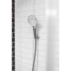 Der Duschkopfhalter ist aus stabilem Kunststoff (ABS) hergestellt und ist passend für alle Duschköpfe. Die verchromte Oberfläche sorgt für den typischen silbernen Glanz, der sich elegant an bestehende Armaturen im Badezimmer anpasst. Der Halter eignet sich ideal zum einfachen Einhängen von Handbrausen – zusätzlich oder als Alternative zu Duschstangen.
