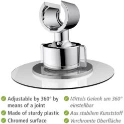 Mit die Abmessungen Ø 8 x 7,5 cm ist der hochwertige Duschkopfhalter eine handliche Ergänzung zur Duscheinrichtung. Stellen Sie die Handbrause so ein, wie es für Sie am angenehmsten ist. Das gelingt ganz leicht, denn der Duschkopfhalter ist mit seinem Gelenk um 360° einstellbar.